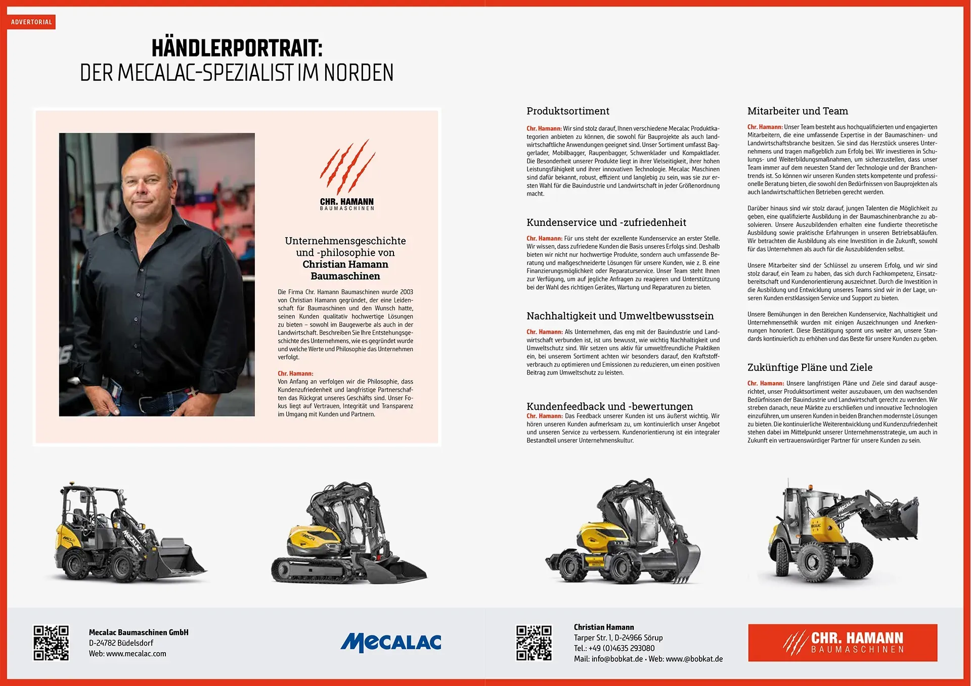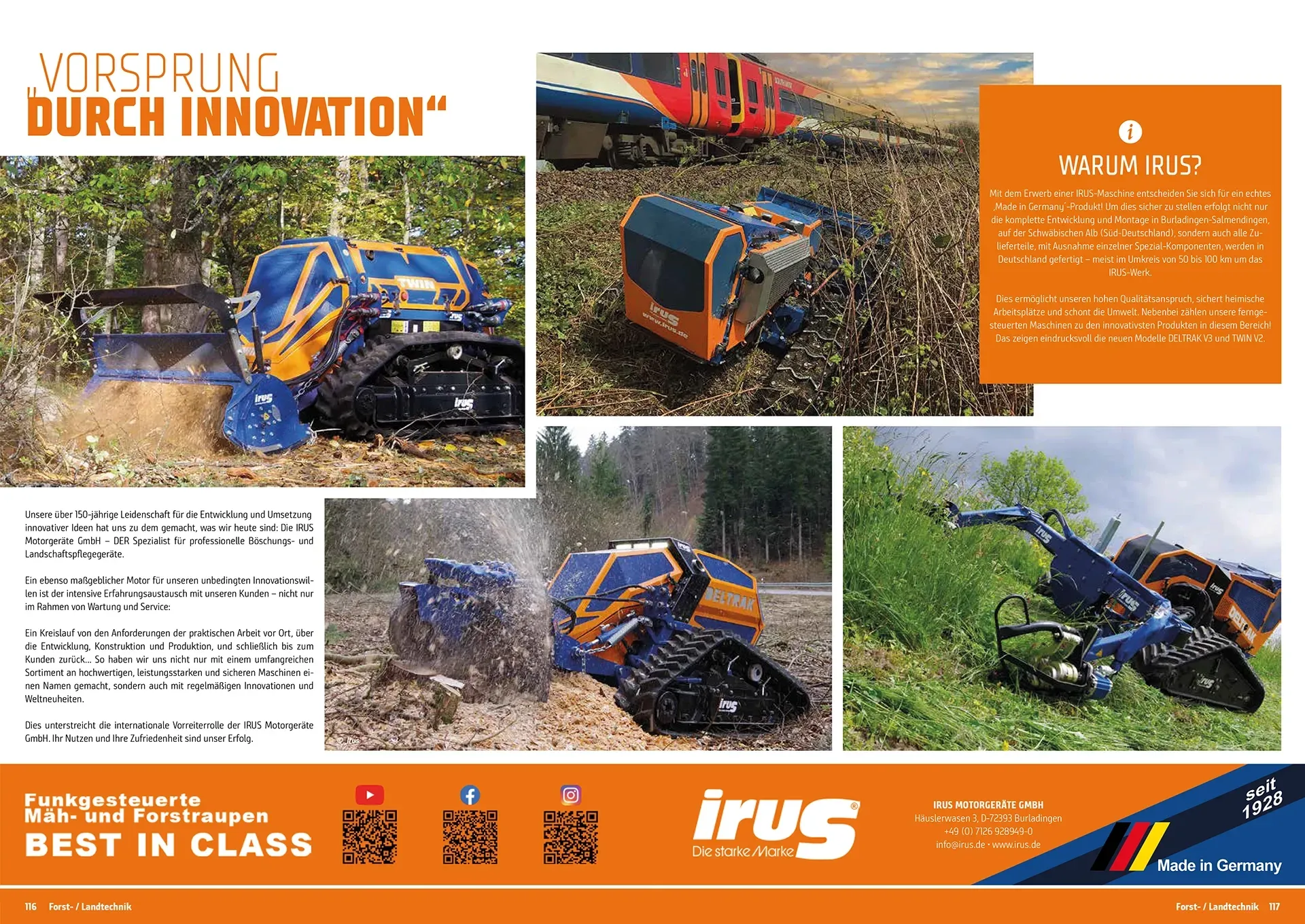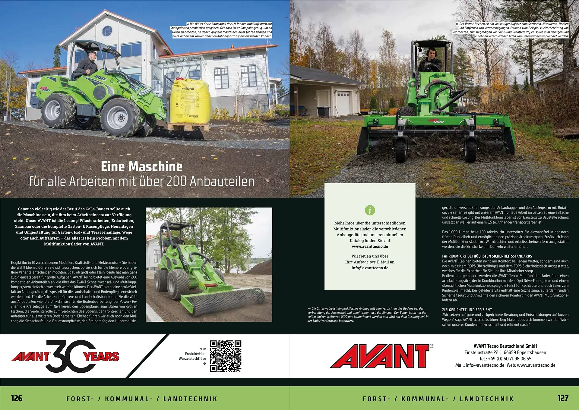 Das E-Motiv zeigt Ihre Maschine (unübersehbar) im Einsatz. Ihre gebuchte Anzeige beinhaltet alles was Ihr potenzieller Kunde über die Maschine wissen sollte (Anwender-Vorteile / technische Daten / Kontaktdaten).