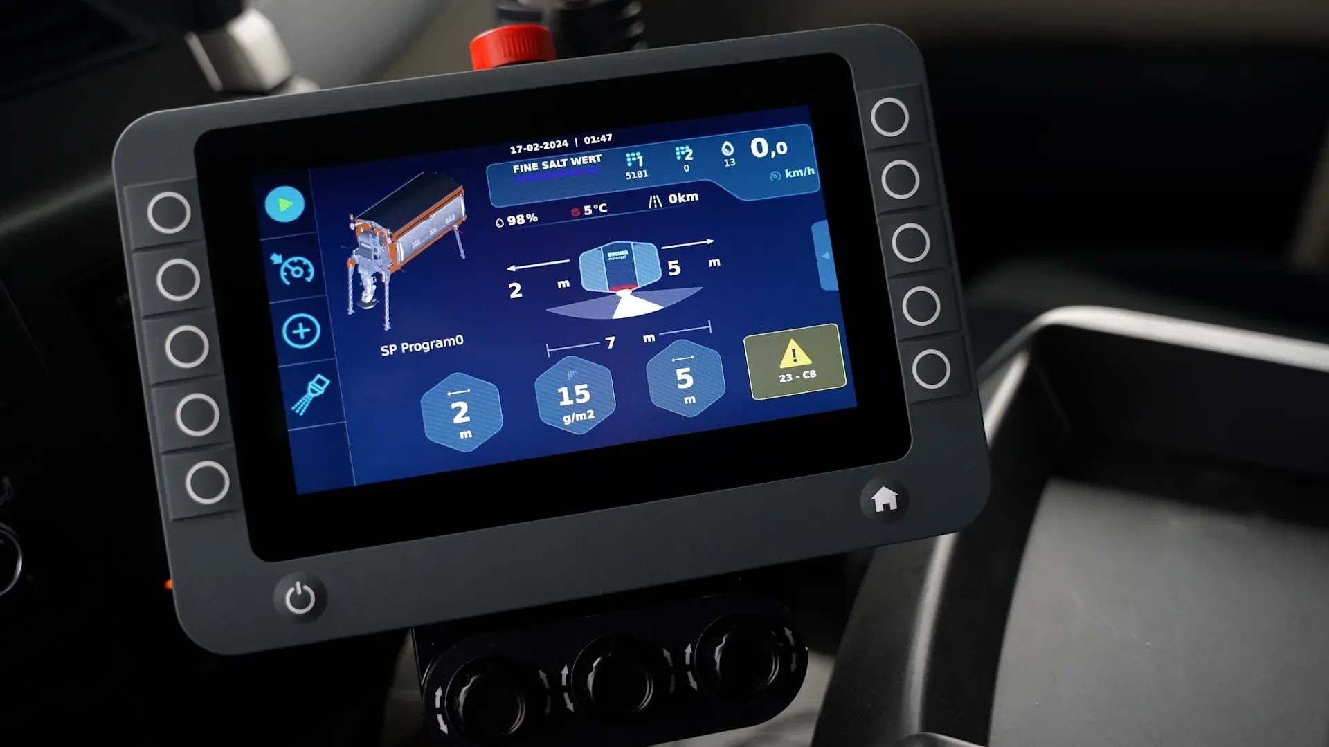 Das neue Head-Up Display wird in Kombination mit dem ebenfalls neu entwickelten Bedienpult EcoSat Pro vorgestellt. Dieses bietet eine Vielzahl innovativer und praxisorientierter Funktionen und wurde gezielt weiterentwickelt, um Bedienkomfort, Effizienz und Übersichtlichkeit im täglichen Einsatz deutlich zu steigern.