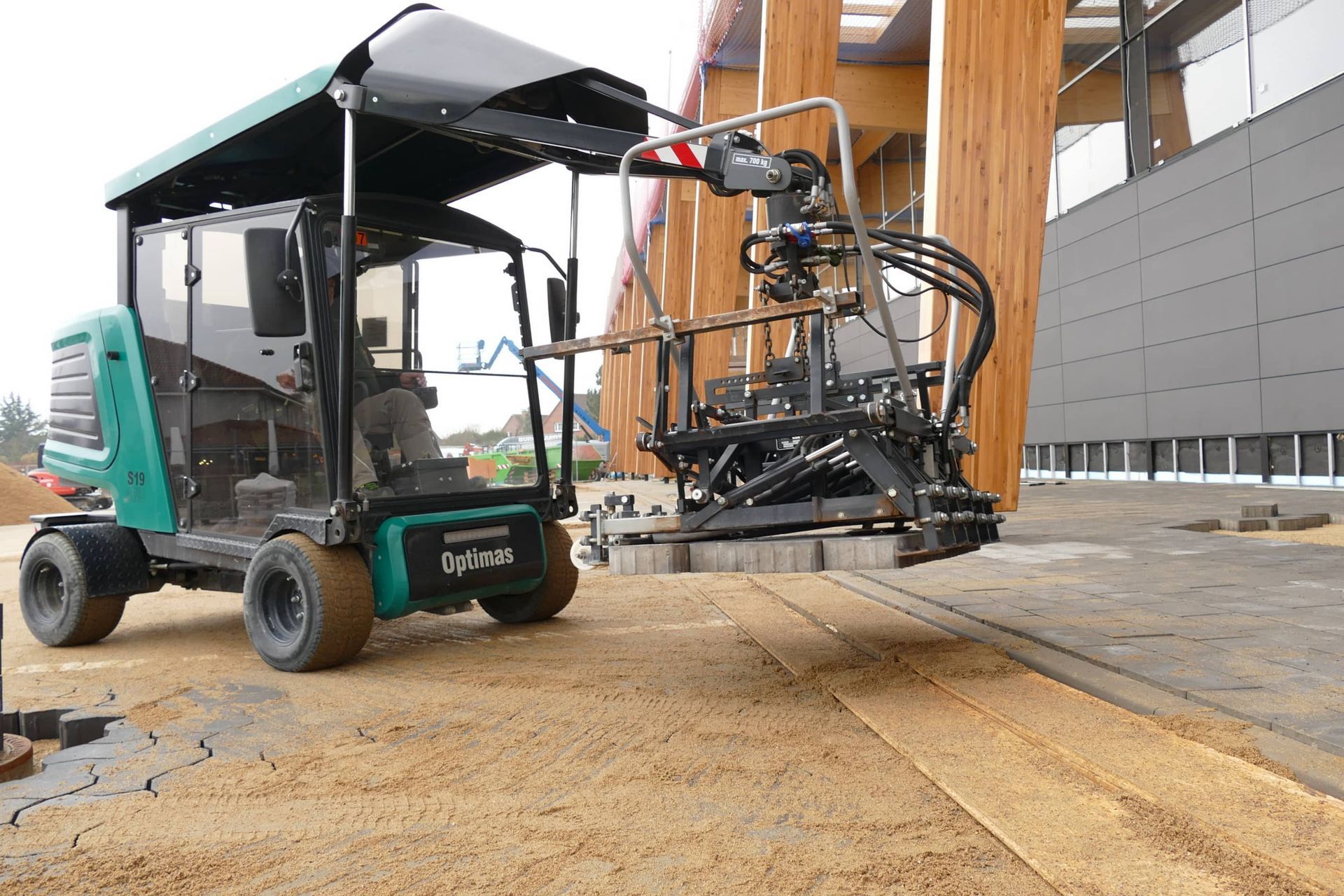 OPTIMAS>> „Würden wir nicht intensiv die Optimas Maschinen und Geräte einsetzen, wären wir nicht mehr am Markt. Durch die Mechanisierung der Arbeit entstehen uns Kostenvorteile von 20 bis 40 Prozent“, sagt Harry-Daniel Leide, Geschäftsführer der Bethke & Leide GmbH in Langenhagen (Hannover). Zum Maschinenpark gehören ein Planierhobel für das Planum, die Material-Verteilschaufel „Finliner“ zum Verteilen von Beton, zwei Pflasterverlegemaschinen S19 PaveJet, ein Vacu-Pallet-Mobil zum Setzen von Bordsteinen, zum Einsanden eine Streuschaufel, ein Pflasterfugenfüllgerät und eine Kehrmaschine. „Das Zusammenwirken dieser Optimas Maschinen und Geräte macht es möglich, Wege und Pflasterflächen deutlich schneller als in Handarbeit zu erstellen“, so Leide.