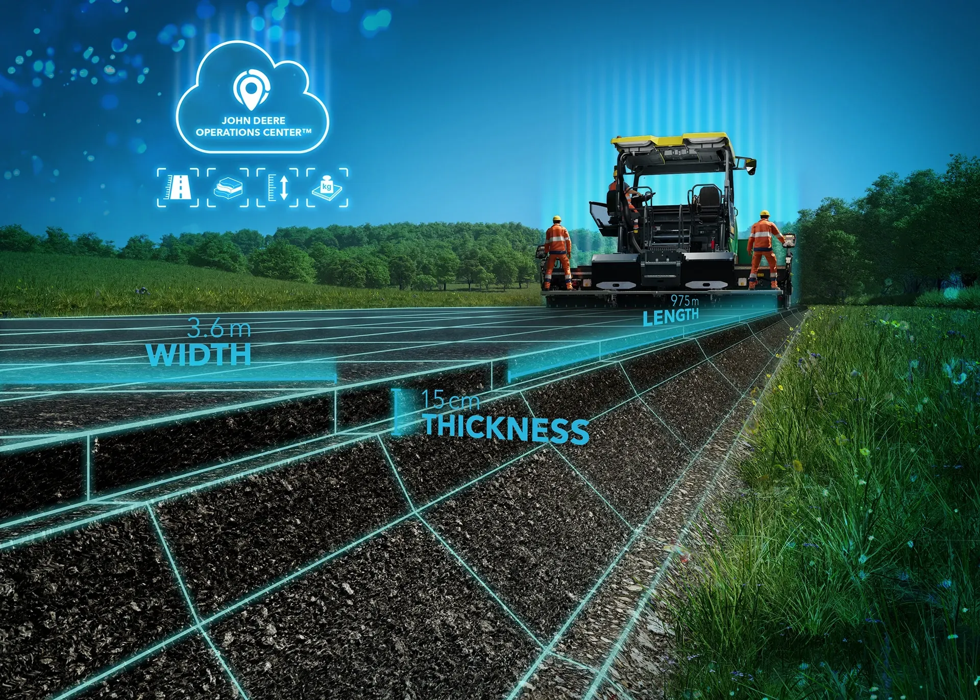 Mit der neuen Lösung Wirtgen Group Performance Tracker (WPT) Paving ermöglicht Vögele außerdem eine präzise Einbau- und Baustellendokumentation. Anhand grundlegender Einbaudaten wie Streckenlänge, Schichtbreite, Schichtstärke und Materialdichte berechnet das System die bereits verbaute Materialmenge. Materiallieferungen lassen sich schnell und einfach erfassen sowie zusätzliche relevante Daten wie CO₂-Emissionen und Kraftstoffverbrauch abbilden. Die zentrale Plattform ist wie bei Smart Pave und allen digitalen Lösungen der Wirtgen Group das John Deere Operations Center: Einbaumeister und Bediener können die Daten dort abrufen, Arbeitsschritte effizient vernetzen, koordinieren und analysieren. In Kombination mit WPT Milling und WPT Compacting können sie den gesamten Fräs-, Einbau- und Verdichtungsprozess dokumentieren und einsehen.