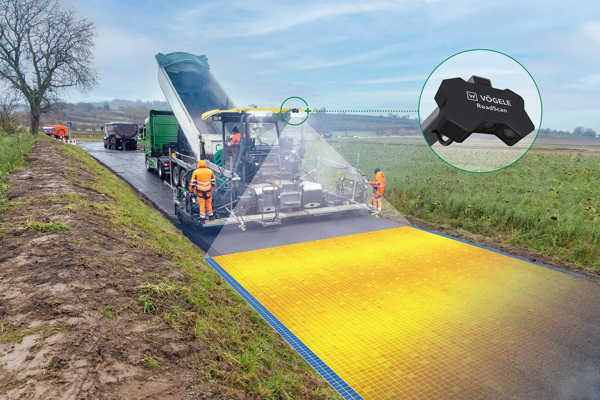 Um Einbautemperaturen noch umfassender und exakter zu dokumentieren, hat Vögele zudem das Temperaturmesssystem RoadScan speziell für die Strich-5-Generation neu entwickelt. Die Messbreite der Infrarotkamera wurde gegenüber dem bisherigen Modell bei besserer Auflösung um 3 m auf bis zu 13 m erhöht. Da der neue RoadScan das StarFire-Doppelantennensystem von WPT Paving nutzt, ist außerdem kein zusätzlicher GPS-Empfänger mehr notwendig. Deshalb integriert das Gehäuse nur noch die Kamera und ist deutlich kleiner, leichter und einfacher zu montieren.