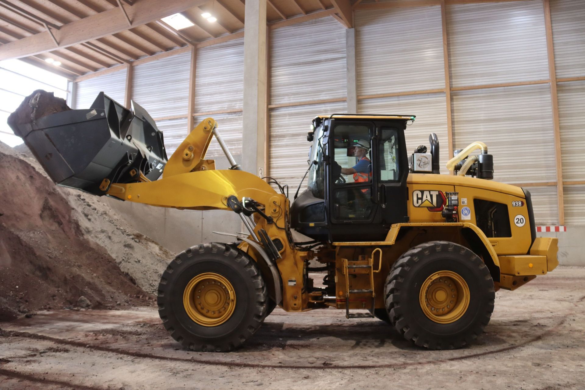 Bis zu 350 000 Tonnen jährlich betragen die Kapazitäten von Aurec, die genehmigungsrechtlich aufbereitet werden dürfen. „Jede Tonne, die angeliefert wird, wird mehrfach – sprichwörtlich gesehen – angefasst. Das bedeutet, wir haben im letzten Jahr 1,8 Millionen Tonnen bearbeitet und bewegt“, erklärt der Geschäftsführer. 60 Prozent davon waren sofort schüttfähig und konnten von den Cat Radladern 938 und 938M direkt umgeschlagen werden. Sie müssen das angelieferte Material in Boxen zusammenschieben. Von den Boxen wird es von ihnen weiterbefördert: Beschickt werden Klassier- und Mischanlagen. Dann bringen sie es auf ein Zwischenlager, bis der Versatz schließlich unmittelbar an das direkt angrenzende Salzbergwerk Bernburg der K+S Minerals and Agriculture GmbH übergeben wird. Weitere Aufgaben im Umschlag übernehmen Cat Radlader 908. Sie transportieren mithilfe von Gabelzinken Bigbags, die mineralische Abfälle enthalten, und übernehmen in der Produktion anfallende Transporte.